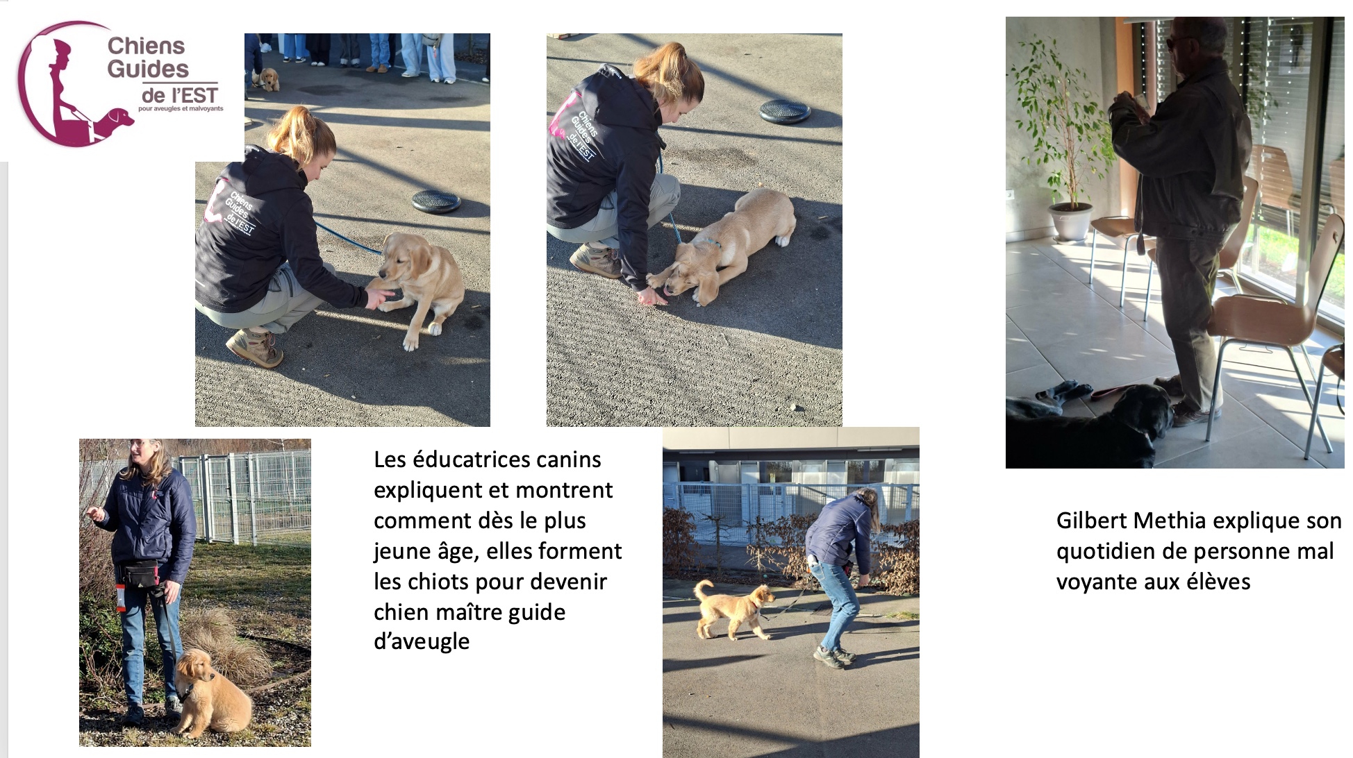 Sur place, les élèves ont découvert l’association, son fonctionnement et comment les chiens sont choisis et formés pour aider des personnes souffrant de déficiences visuelles.